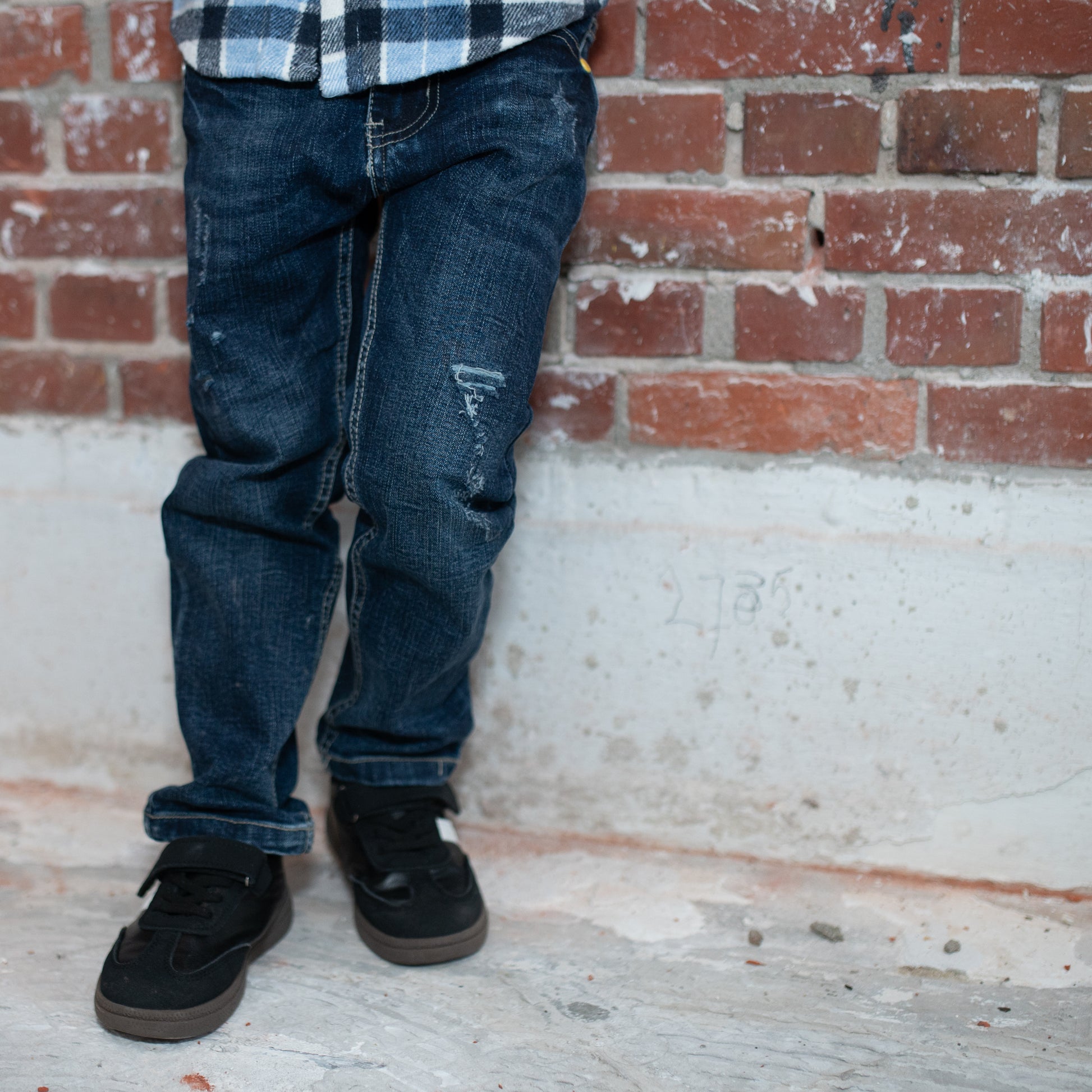 Op zoek naar een stoere jongens spijkerbroek? Deze navy/donkerblauwe spijkerbroek is gemaakt van katoen & polyester, met verstelbaar elastiek aan de binnenkant van de taille (bij de kleinere maten). De sluiting aan de voorkant bestaat uit een rits en knoop.