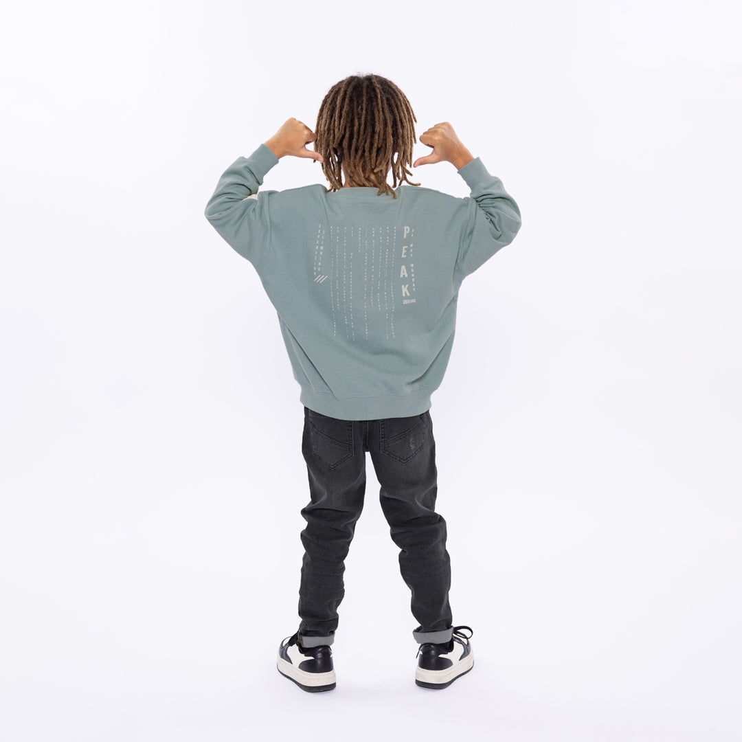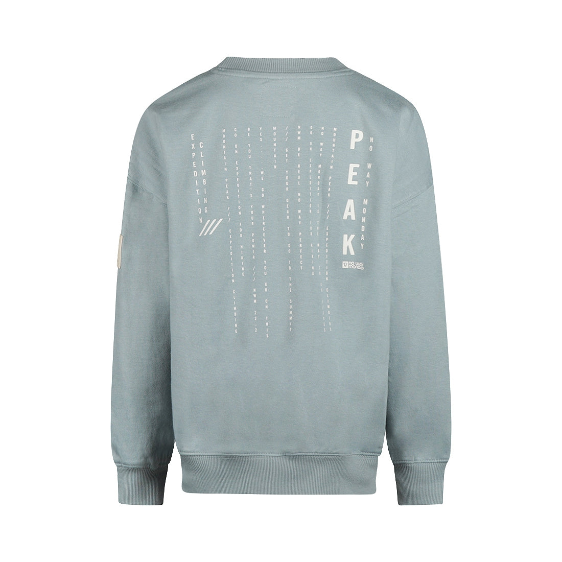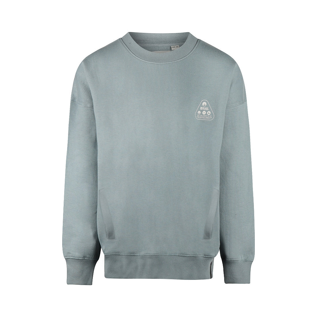 Deze 'loose fit' faded blue sweater is gemaakt van 100% katoen. Deze 'dropped shoulder' trui van No Way Monday valt daardoor baggy. De schouders zijn breder en vallen halverwege de bovenarm. De trui heeft twee zakken aan de voorzijde.